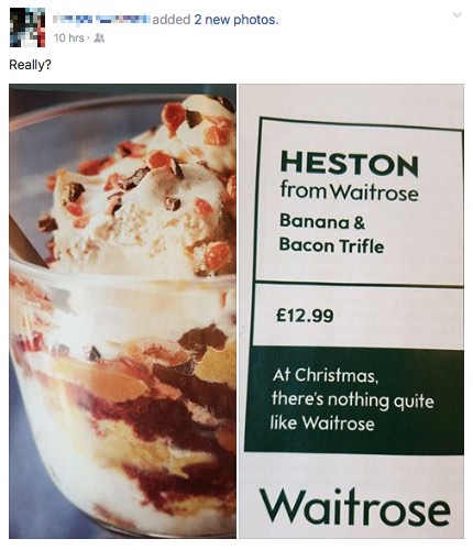Overall, I can see where Heston was going with the idea, and given the chance I’d be all over this like a fat kid on a cupcake. Being an Australian born after 1930, I loathe trifle and its typically jelly-and-tinned-fruit consistency. Including rum, caramel, bacon, chocolate and banana? Count me in!