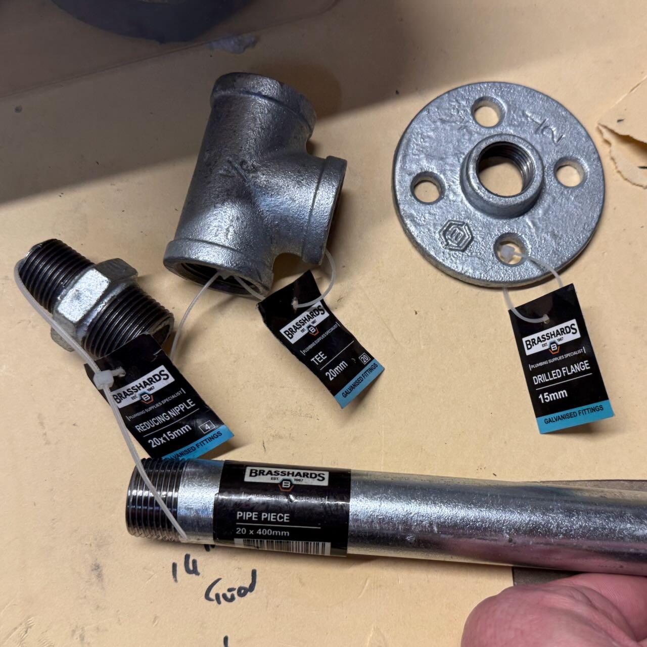 - 20mm Galvanised Pipe (400mm) use whatever length makes you feel happy. I won’t judge.